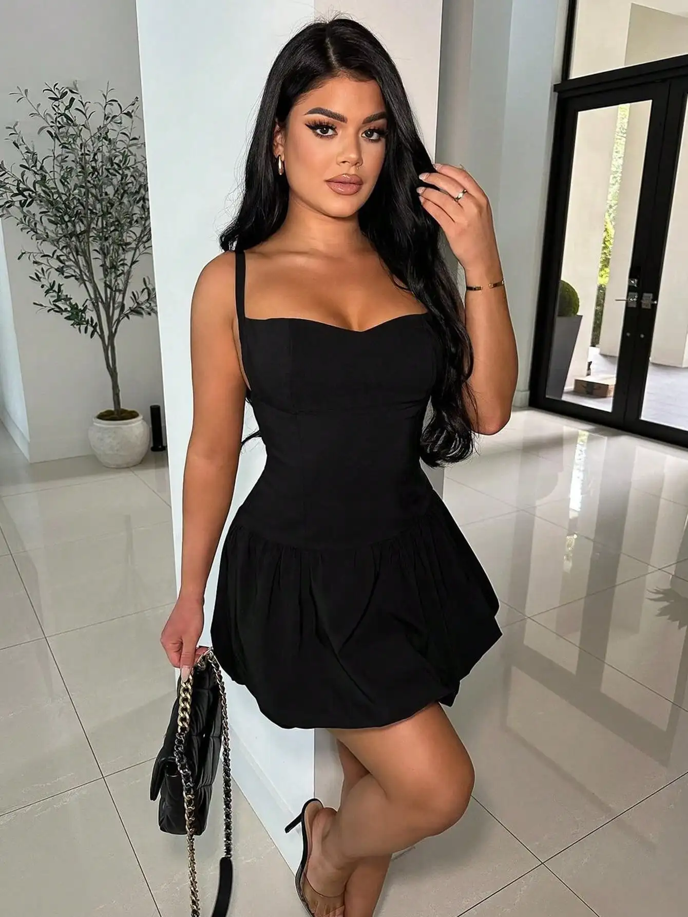 A silhueta em A oferece um caimento elegante, realçando suas curvas naturais para um visual sexy e sofisticado.